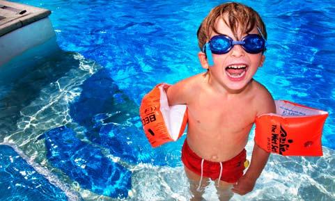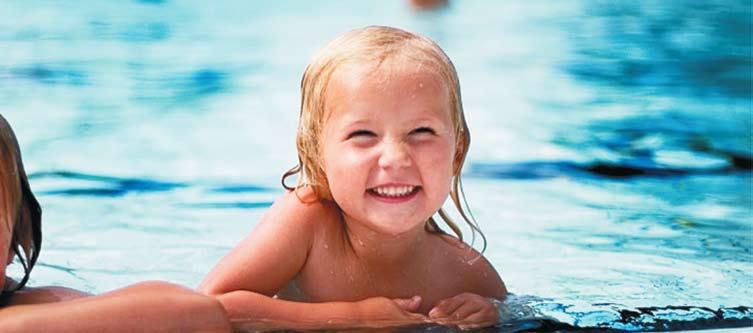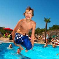 ”Poolen på vår camping är grym! Idag har jag lärt mig dyka i barnklubben och i morgon ska vi tävla på BMX-banan som ligger bredvid vår stuga.”