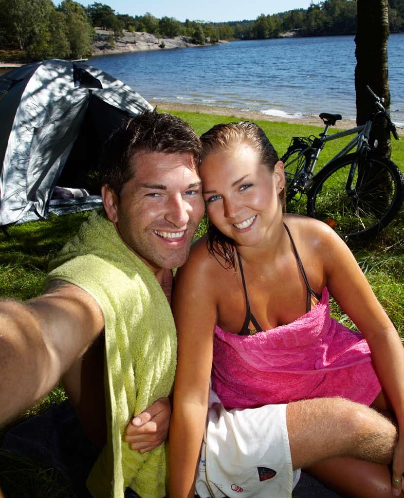 ”Cykelturen krävde att vi slängde oss i vattnet så fort vi checkat in. Sen satt vi bara där utanför tältet och såg solen gå ner över sjön och lyssnade på ljudet av natur och semester.”