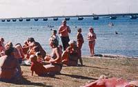 ”Samling på trappan innan middagen. Pappa är lite stolt idag. Och mör... Han kom äntligen upp på vattenskidorna efter femtonde försöket..!”