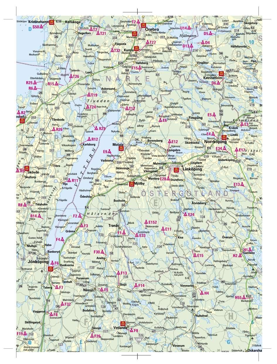 I camping platspresentationerna på katalogsidorna 32 – 143 finns hänvisningar till kartsidorna, så att du lätt ska hitta vägen till just din campingplats!
