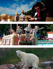 Rekreationsanläggningar : Campingplatsens erbjudande av plats för aktiviteter såsom barnlek (lekplats, lekrum), bad (friluftsbad, pool, vattenrutch, bastu, jacuzzi), samling (samlingsrum, tv-rum, konferensrum, konferensservice), lekland, bollplaner, minigolf, uthyrning av cyklar och kanoter, motionsrum, solarium, grillplats, vandrings leder, fiske, motions- och cykelspår.