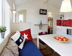 Våra stugor är i storlekar 15 – 35 kvm med bekvämt boende för 5 personer. De största innehåller två sovrum och storstuga med kök. Här har du självhushåll med hotellstandard. Diskmaskin, TV, dvd, mikro och andra finesser gör stugboendet bekvämt.
