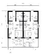 PARSTUGA 42 m² Byggnadsyta 55,5 m². Boyta per stugdel 17,8 m² med 6,7 m² överbyggd altan.