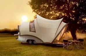 Uppfällbara husvagnar á la kalle Anka har inte riktigt slagit igenom i Sverige, men på många andra håll i europa är de ett vanligt inslag. Nu får den klassiska versionen sällskap av en lyxigt designad vagn. Här finns golvbelysning, varm- och kallvatten, teak-terass, espressomaskin, vinkylare och ett inte så lite spektakulärt tält som fälls upp på en minut. Läs mer på www.ysin.co.uk, ( ySIN – your Suit in Nature).