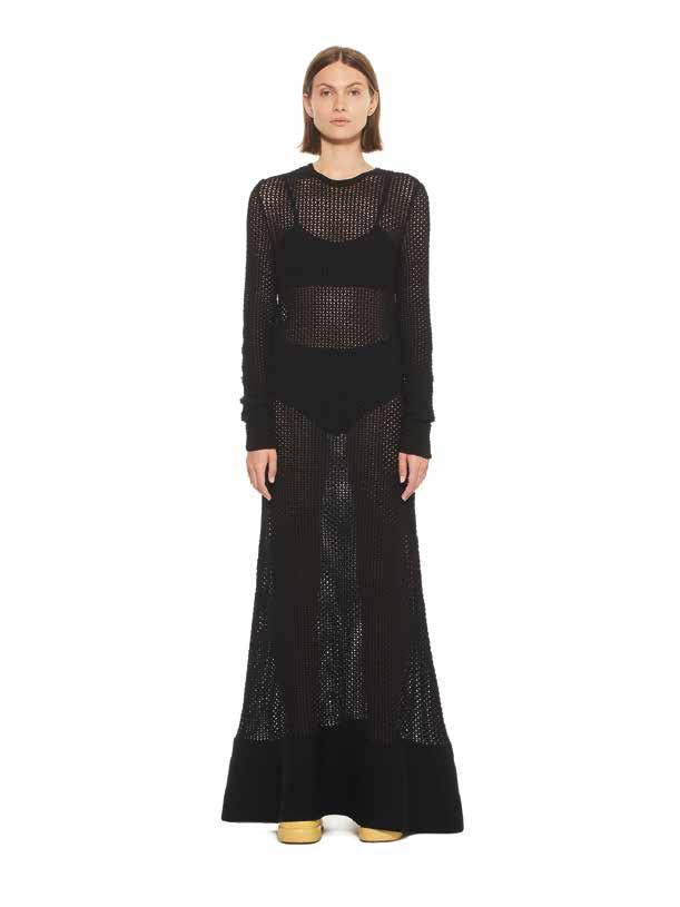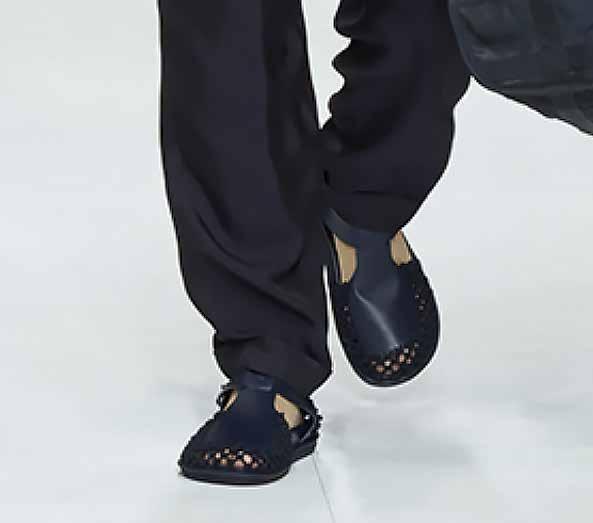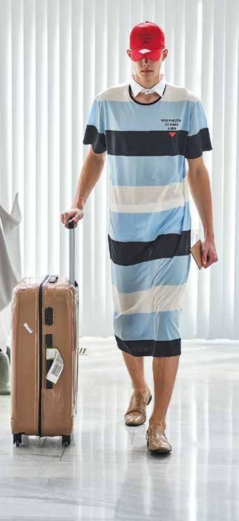 versione sartoriale. Il gusto bon ton lanciato nella collezione invernale, torna in versione primaverile in Twin set e cardigan annodati Il classico e minimale pantalone nero viene abbinato a top materici mentre sul piano degli accessori il Marsupio abbandona il suo status di accessorio sportivo e un pò démodé per acquisire nuovo prestigio rivestendosi di applicazioni e texture raffinate. Le cinte si indossano due a due, ballerine e platform segnano il passo e borse mezzaluna completano il look. Una ricerca di nuova mascolinità caratterizza invece le collezioni uomo PE24. Reinterpretazioni di grandi classici e attualizzazione delle linee con l’introduzione di gonne a portafogli e la scelta di tessuti