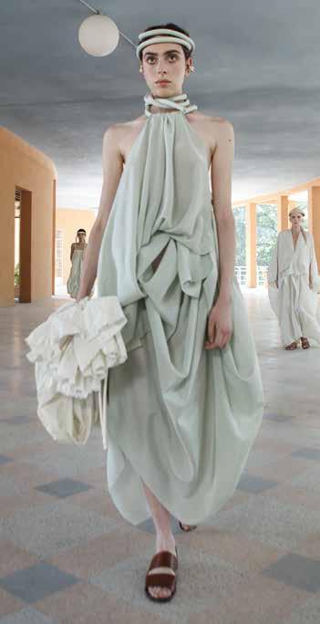 A narrare le nuove soluzioni creative pensate per la Primavera/Estate 2024, contemporanei e ammalianti Dèi delle profondità marine che emergono dalle acque indossando innovative soluzioni tecniche che disegnano nuovi volumi e dipingono nuove cromie animando le superfici. Freschezza, dinamismo, versatilità estrema nella capacità di trasformarsi, come superficie di acqua che si increspa, muove e ricompone al solo tocco.