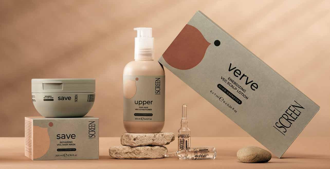 The futuristic vision behind the line’s development was based on a few fundamental assumptions, as explained by SCREEN R&D. These premises are: natural formulas that guarantee high performance, professional efficacy, an optimized line, and sustainable packaging