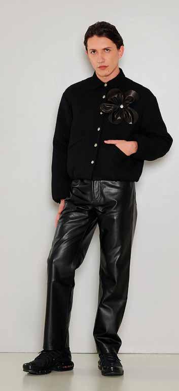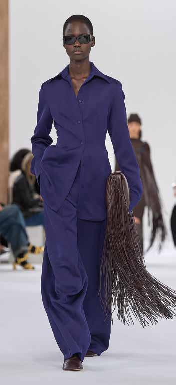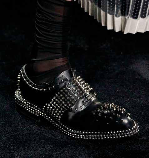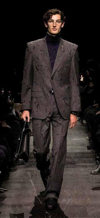 tempo, dove il “vedo-non vedo” sussurra più che gridare. Chiudono il cerchio i tocchi punk, cinture sovrapposte, borchie e strappi, reinterpretati però in una chiave raffinata e femminile. Accanto a tutto questo, un trionfo di velluto, fiocchi, pelle, stampe floreali romantiche e perfino muccate, in un’ode all’eclettismo più sofisticato. E l’uomo? Cosa indosserà in questo autunno e inverno a venire? Anche lui si libera dai codici tradizionali.