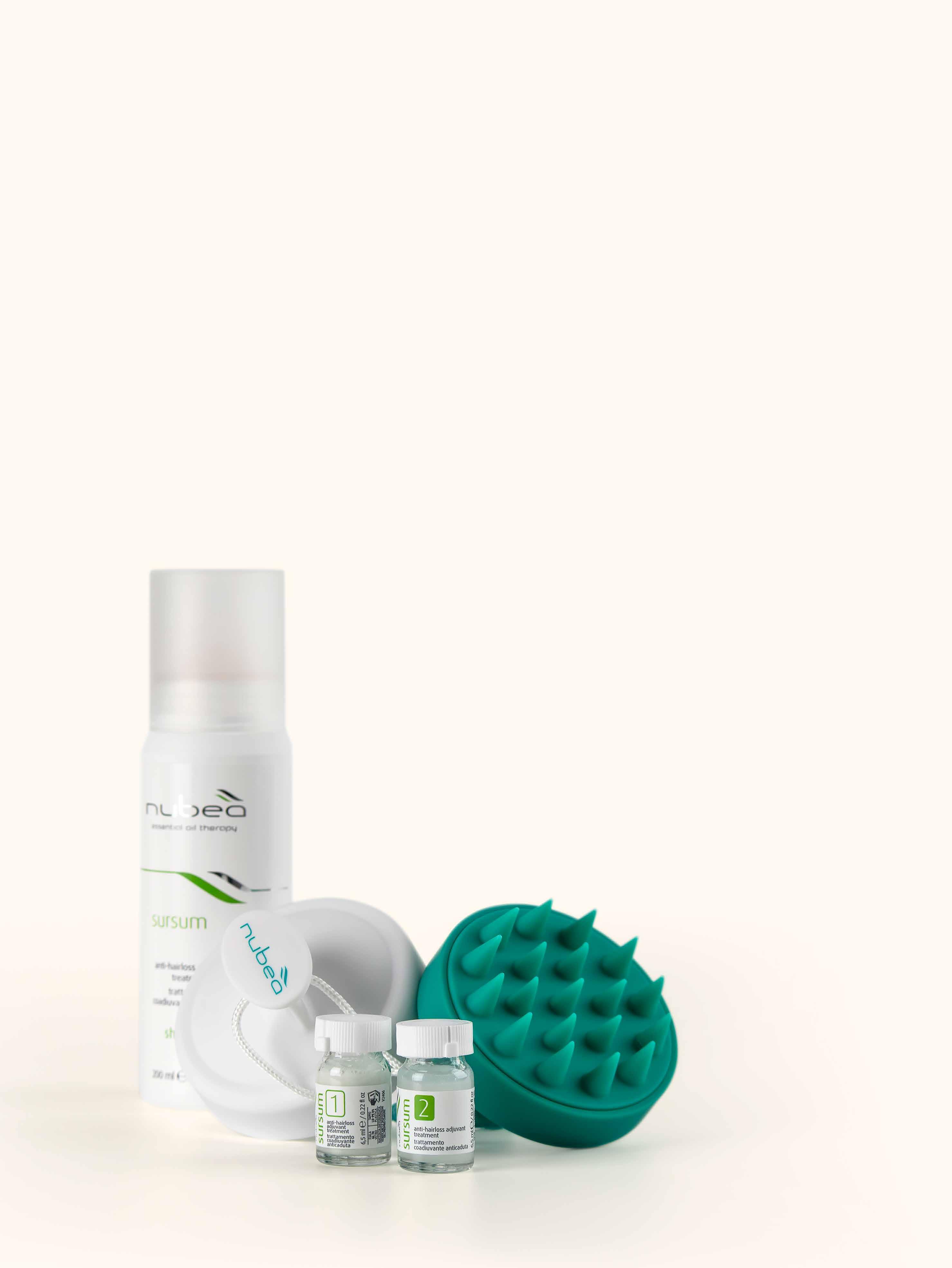 Inizia con l’applicazione della fiala 1 Sursum, trattamento coadiuvante anticaduta con Oli Essenziali, Vitamine, Oligoelementi e preziosi Estratti Vegetali. Separa i capelli e applica le gocce del trattamento su tutto il cuoio capelluto.
