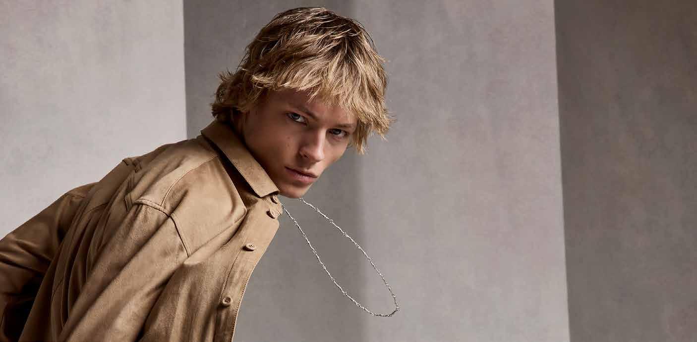 Le silhouette si fanno fluide e stratificate, serpeggiando tra capispalla oversize, gonne-pantalone e maglieria avvolgente. Il tailoring resta centrale, ma si rinnova: giacche destrutturate, pantaloni ampi, spalle morbide. Il grunge anni ’90 torna con camicie a quadri, denim slavati e layering disinvolto. Non mancano dettagli forti in accessori come stivali chunky, guanti lunghi in pelle, gioielli maschili oversize. Anche per il nostro LUI, spiccano colori saturi e inaspettati, tra cui lime, rosso paprika e lilla, insieme a marrone burgundy accostati a tessuti opulenti come velluto, shearling e broccato. Tra gli accessori must-have il ritorno di cappelli retrò come la coppola o il basco