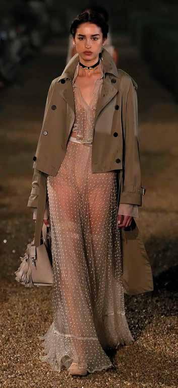In un gioco costante di contrasti, i leggins si infilano sotto blazer sartoriali o minidress, le frange boho prendono il sopravvento sui capi da giorno mentre su quelle preziose, iridescenti e luccicanti su quelli per la sera. Il leather trench diventa una vera e propria armatura urbana, mentre il knitwear fasciato si impone nei guardaroba trasformando il comfort in arte.