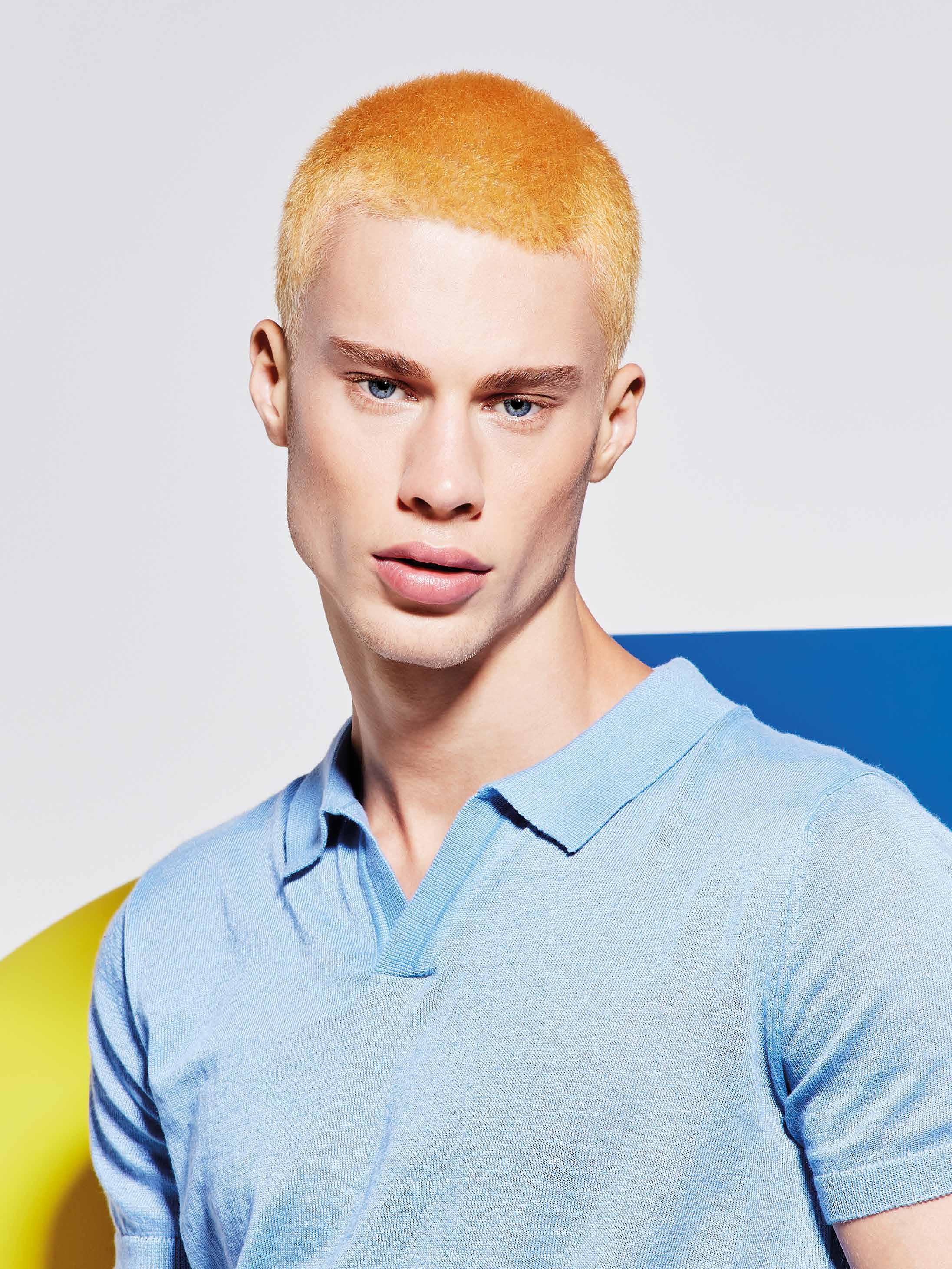 Il look perfetto per un uomo estroso, stylish e sicuro di sé. Un buzz hair cut cortissimo, estremamente cool nella sua versione oro caldo.