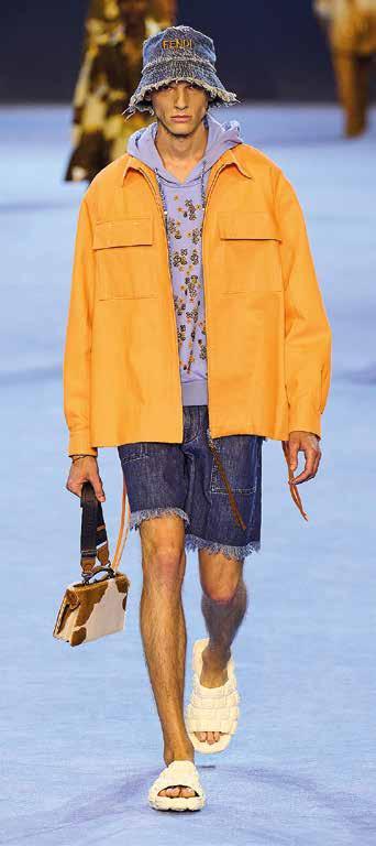 ballerine raso terra tornano minimali e tra gli accessori un grande ritorno: orecchini a cerchio, rassicuranti e un pò 80s. Le borse? Morbidissime o piccolissime. Nel mondo maschile invece, vige una nuova mascolinità, l’uomo si riappropria del fascino e della seduzione tramite i capi che indossa e le parti di corpo che sceglie di mostrare. Shorts e canotte sono protagoniste, mettono in risalto gambe e petto donando centralità alla corporatura anche con gli abiti comfy. Il denim è sicuramente il tessuto più amato presentato anche nei pattern più disparati: check, righe, elementi geometrici, astratti e floreali. I pantaloni si fanno vertiginosamente corti e i guardaroba vedono una presenza costante: la canotta. Le maglie sono traforate e persino l’abito formale più confortevole e cocooning crea panneggi sul corpo evidenziandone le forme. Ai piedi, se non scalzi, stivali o sandali chunky