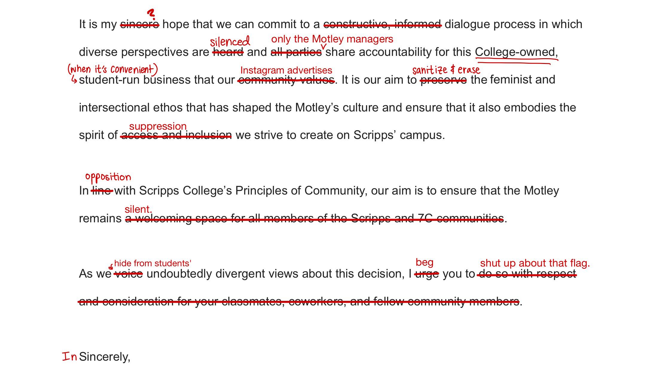 Against Scripps administration’s attempts to subsume the Motley’s history into their own political narrative, we, an autonomous group of Scripps students, intend to demonstrate that the Motley has always been a space of political expression and independence from the Administration. We reject the Scripps Administration’s attempt to whitewash and dilute this political history. Dive into the archives to see for yourself.