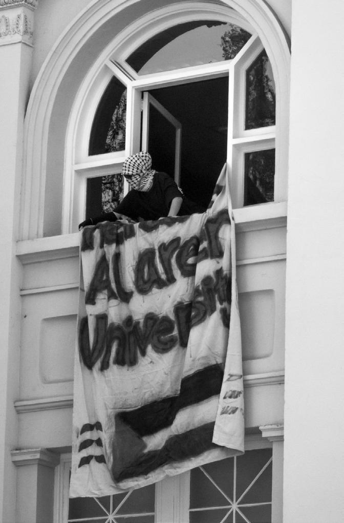 During the building takeover, students ziptied the front entrance closed, but kept the back doors unlocked for people to