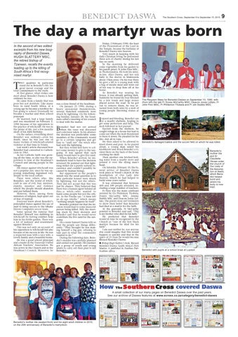 The day a martyr was born In the second of two edited excerpts from his new biography of Benedict Daswa, HUGH SLATTERY MSC, the retired bishop of Tzaneen, recalls the events leading up to the killing of South Africa’s first recognised martyr.