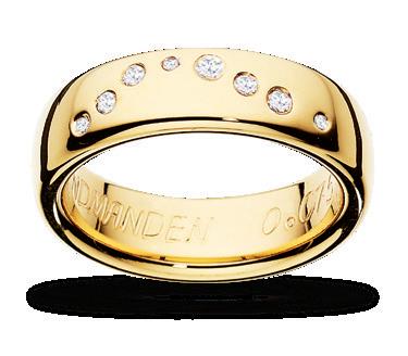 I kan sammensætte jeres personlige ringe i 8 kt. eller 14 kt. guld. Vælg den overfladebehandling, form og isætning af brillanter, der passer jer. Her på siden finder I 6 eksempler på sammensætninger. Se priser i prisindstikket.
