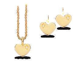 Pixel-serien fås i sæt med halskæde og øreringe. Vælg mellem sølv og forgyldt sølv.