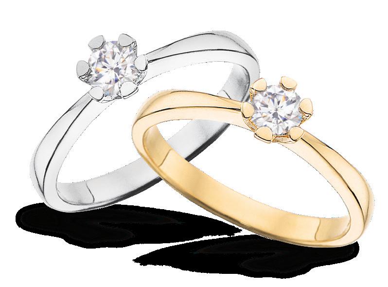 ved de seks afrundede grabber, der holder brillanten. Vida fås i 8 & 14 kt. rød- og hvidguld.