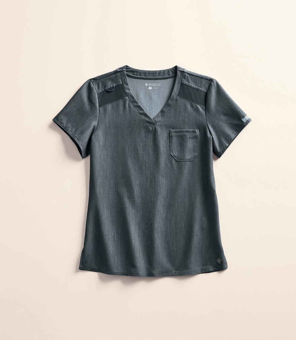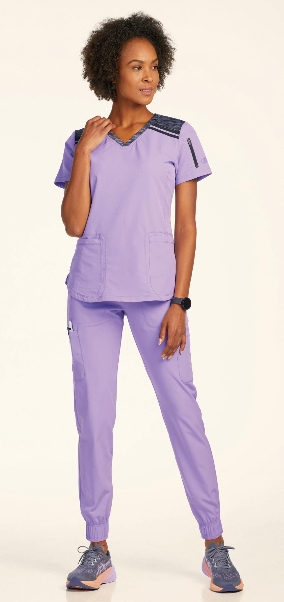 LEFT: 2500H Monica V-neck Top 4 pockets, side slits. Starting @ $24.99 9560 Rebecca Drawstring Pant 6 pockets, elastic waistband. Starting @ $26.99 RIGHT: 2530 Mariah V-neck Top 3 pockets, rib knit neckline & side panels. Starting @ $28.99 9575 Renee Jogger 5 pockets, elastic cuffs & waistband, drawstring. Starting @ $32.99