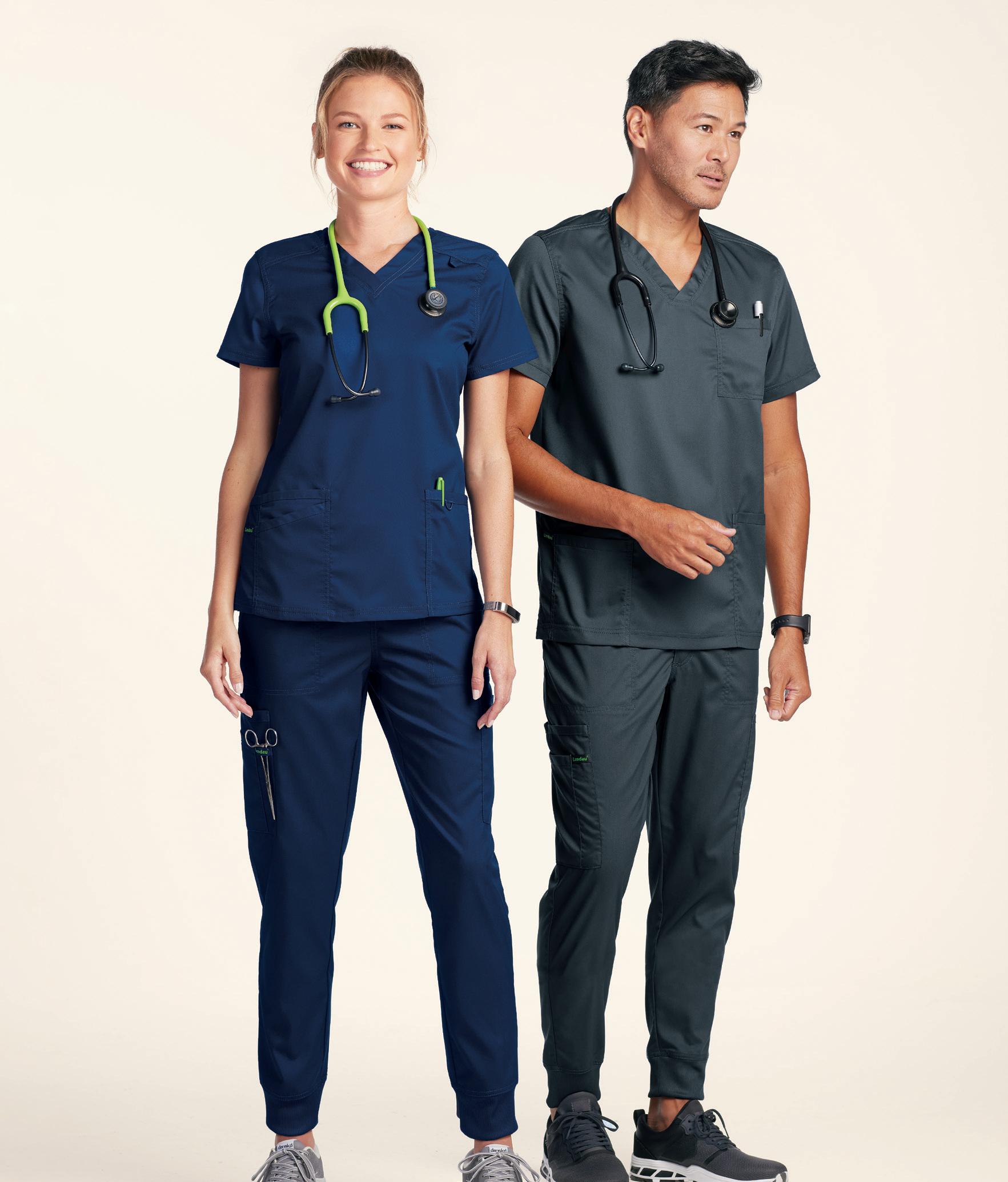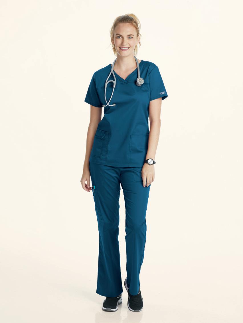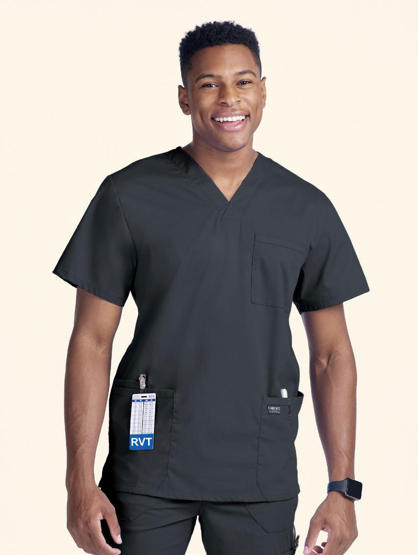 TOP RIGHT: C12137 Tuck-in Top V-neck, chest pocket, mesh-lined back panel, curved hem. Starting @ $39.99 C52137 Cargo Jogger 6 pockets, elastic waistband & cuffs, drawstring. Starting @ $49.99 BOTTOM LEFT: C12237 Men’s V-neck Top 4 pockets, vented back with mesh lined panel, badge loop Starting @ $39.99 C52237 Men’s Slim Leg Pant 6 pockets, rib knit waistband, bungee badge loop, drawstring. Starting @ $49.99 BOTTOM RIGHT: C15037 V-neck Top 2 pockets, badge loop. Starting @ $39.99 C55037 Cargo Pant 6 pockets, elastic waistband, functional zipper fly, belt loops. Starting @ $49.99