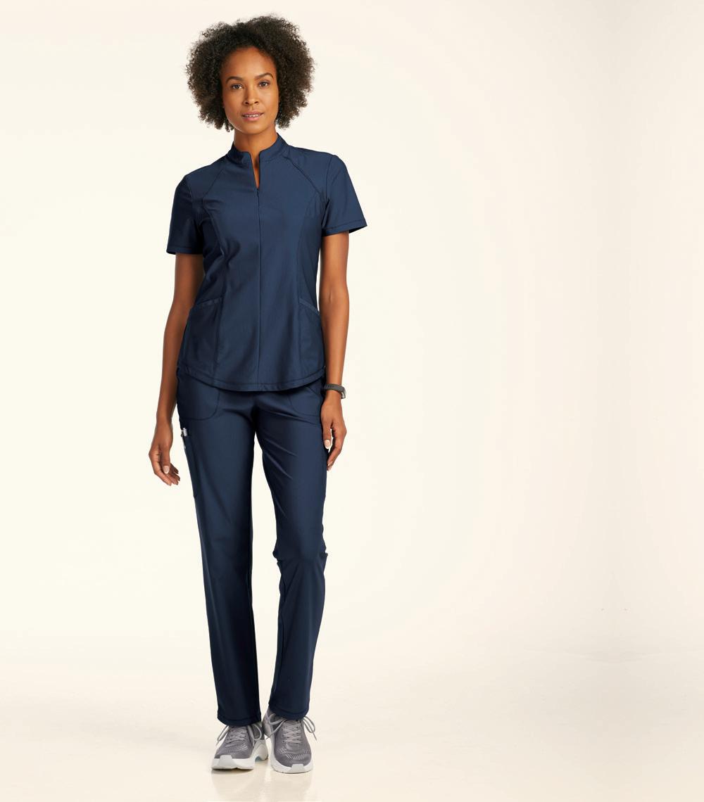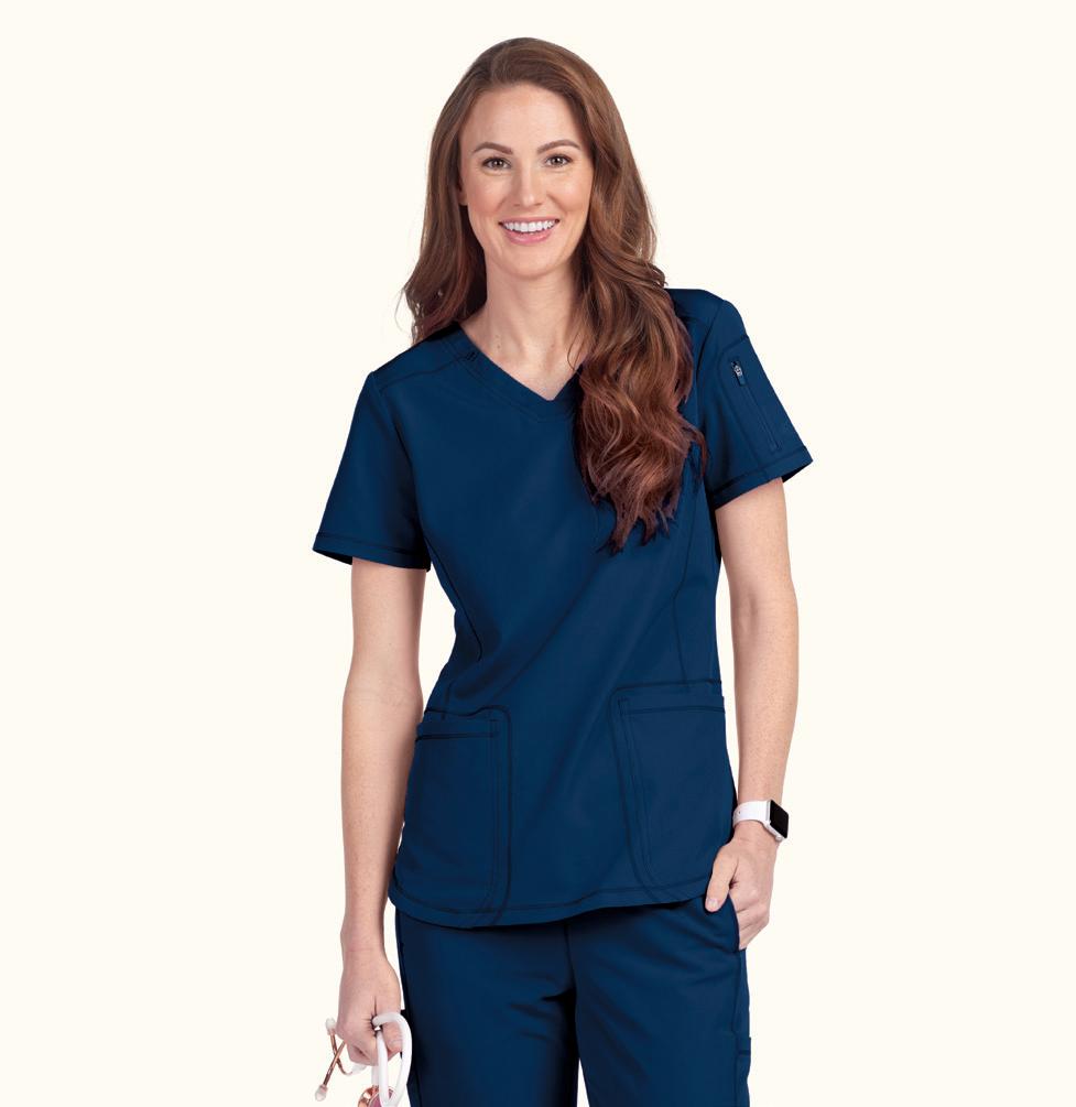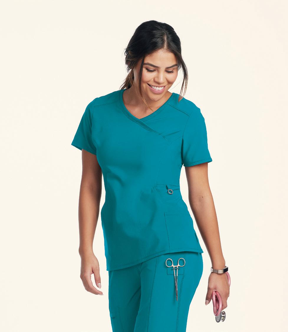 LEFT: 2121 Callie Notch Neck Top 2 pockets, side slits. Starting @ $32.99 2207 Callie Cargo Pant 3 pockets, elastic back waistband, drawstring. Starting @ $38.99 BOTTOM RIGHT: 2407 Bella Warm Up Jacket Jewel neck, 2-pockets, snap front, knit cuffs. Starting @ $41.99 TOP RIGHT: BUT163 Mission Tuck-in Top Mandarin collar, henley button placket, chest pocket, side slits. Starting @ $30.99 BUP606 Mission Jogger 6 pockets, drawstring waistband, elastic cuff. Starting @ $37.99 BOTTOM LEFT: BUT167 Purpose Top V-neck, 4 pockets, badge loop, side slits. Starting @ $30.99 BUP601 Purpose Pant 5 pockets, flat front elastic waistband, drawstring. Starting @ $37.99 BOTTOM RIGHT: BUT167 Purpose Top V-neck, 4 pockets, badge loop, side slits. Starting @ $30.99 BUP606 Mission Jogger 6 pockets, drawstring waistband, elastic cuff. Starting @ $37.99 In Polyester/Rayon/Spandex. Styles & sizes vary by color. ONE MISSION. ONE PURPOSE. WEAR IT WELL. MOISTURE WICKING WRINKLE RELEASE 360° SPANDEX STRETCH SUPER-SOFT TOUCH In Polyester/Rayon/Spandex. Styles & sizes vary by color. NEW COLOR FRESCO BLUE EARLY RELEASE 20 | ScrubsAndBeyond.com 21