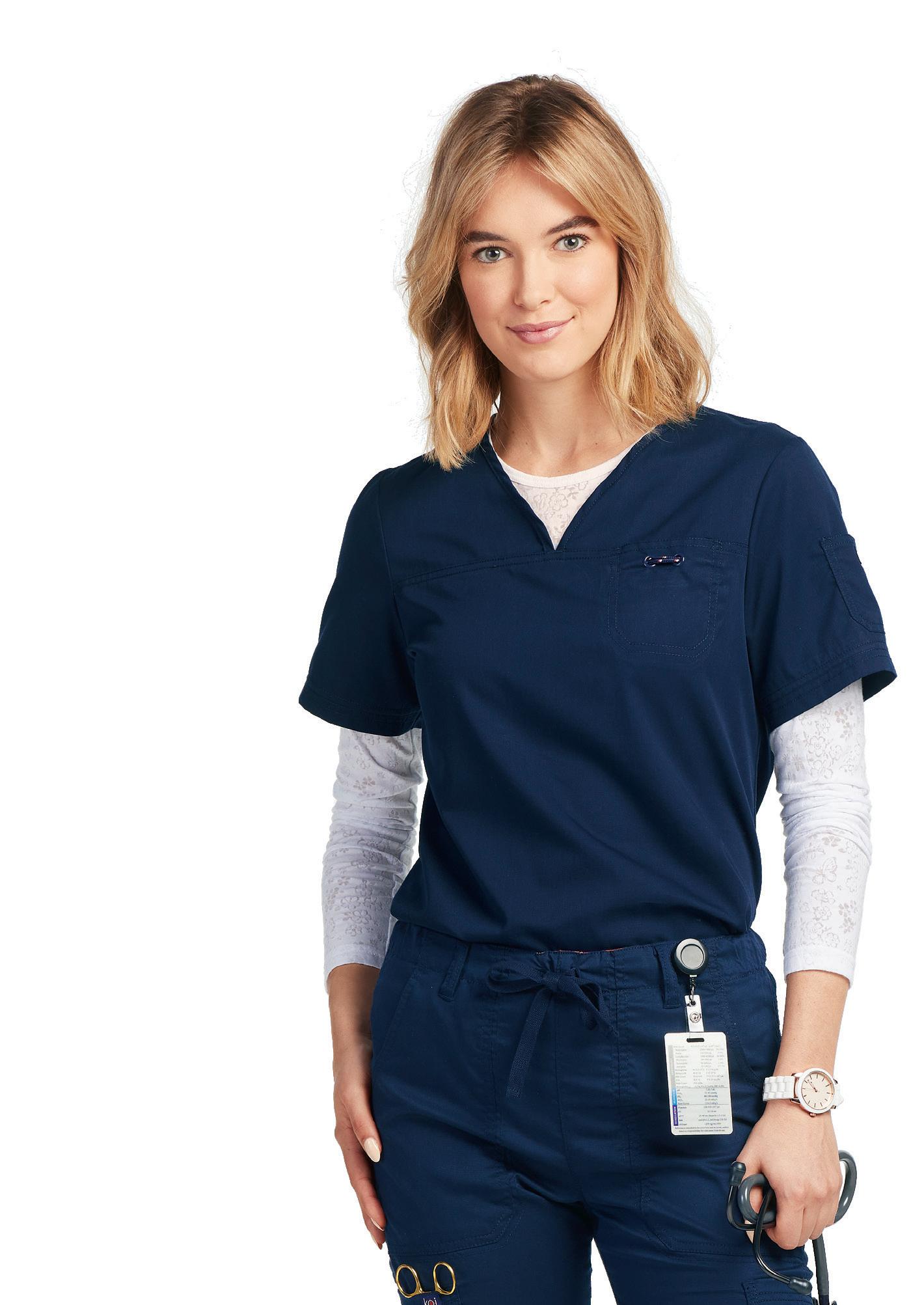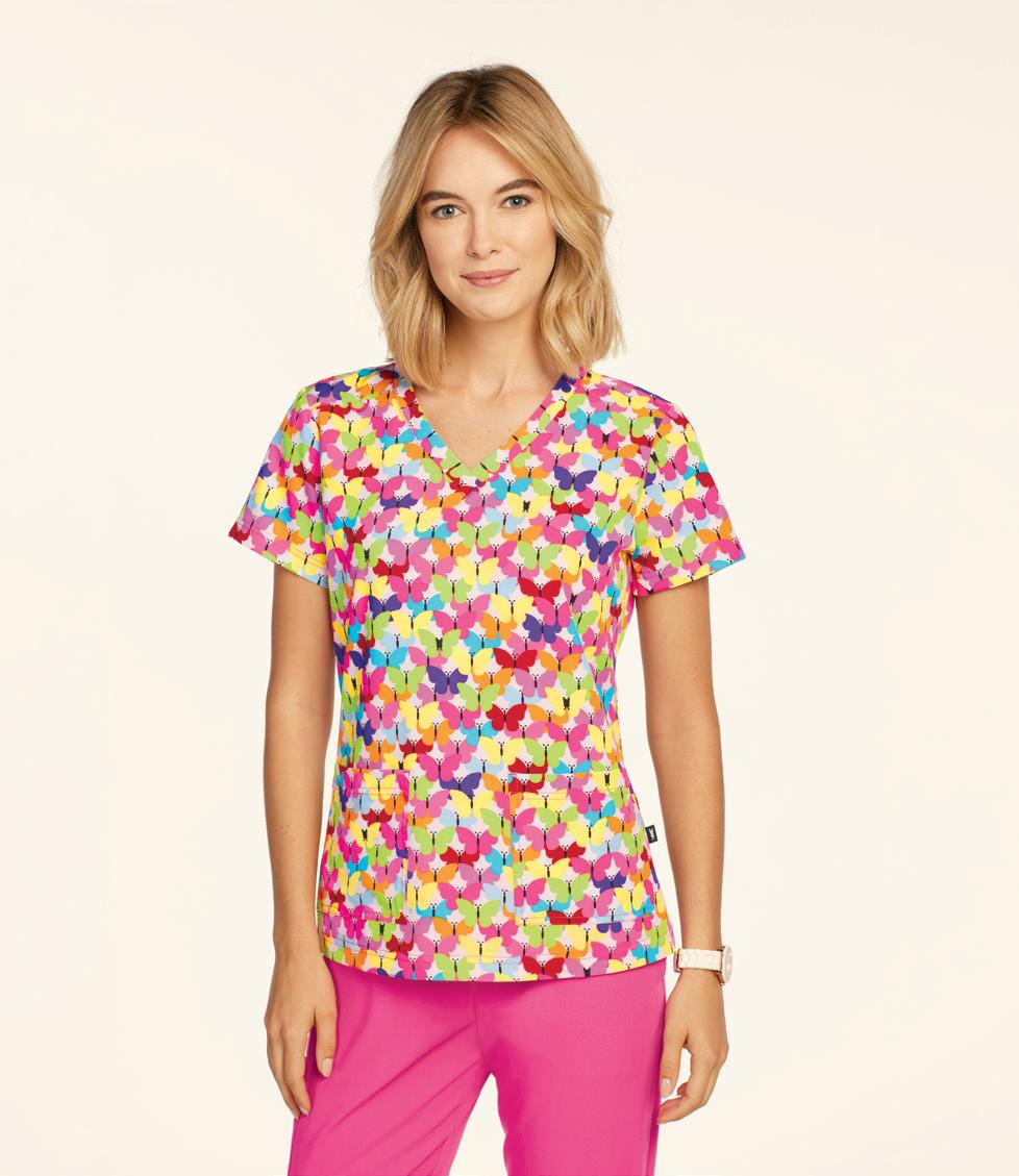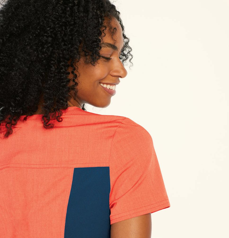 LEFT: 2121 Callie Notch Neck Top 2 pockets, side slits. Starting @ $32.99 2207 Callie Cargo Pant 3 pockets, elastic back waistband, drawstring. Starting @ $38.99 BOTTOM RIGHT: 2407 Bella Warm Up Jacket Jewel neck, 2-pockets, snap front, knit cuffs. Starting @ $41.99 TOP RIGHT: BUT163 Mission Tuck-in Top Mandarin collar, henley button placket, chest pocket, side slits. Starting @ $30.99 BUP606 Mission Jogger 6 pockets, drawstring waistband, elastic cuff. Starting @ $37.99 BOTTOM LEFT: BUT167 Purpose Top V-neck, 4 pockets, badge loop, side slits. Starting @ $30.99 BUP601 Purpose Pant 5 pockets, flat front elastic waistband, drawstring. Starting @ $37.99 BOTTOM RIGHT: BUT167 Purpose Top V-neck, 4 pockets, badge loop, side slits. Starting @ $30.99 BUP606 Mission Jogger 6 pockets, drawstring waistband, elastic cuff. Starting @ $37.99 In Polyester/Rayon/Spandex. Styles & sizes vary by color. ONE MISSION. ONE PURPOSE. WEAR IT WELL. MOISTURE WICKING WRINKLE RELEASE 360° SPANDEX STRETCH SUPER-SOFT TOUCH In Polyester/Rayon/Spandex. Styles & sizes vary by color. NEW COLOR FRESCO BLUE EARLY RELEASE 20 | ScrubsAndBeyond.com 21