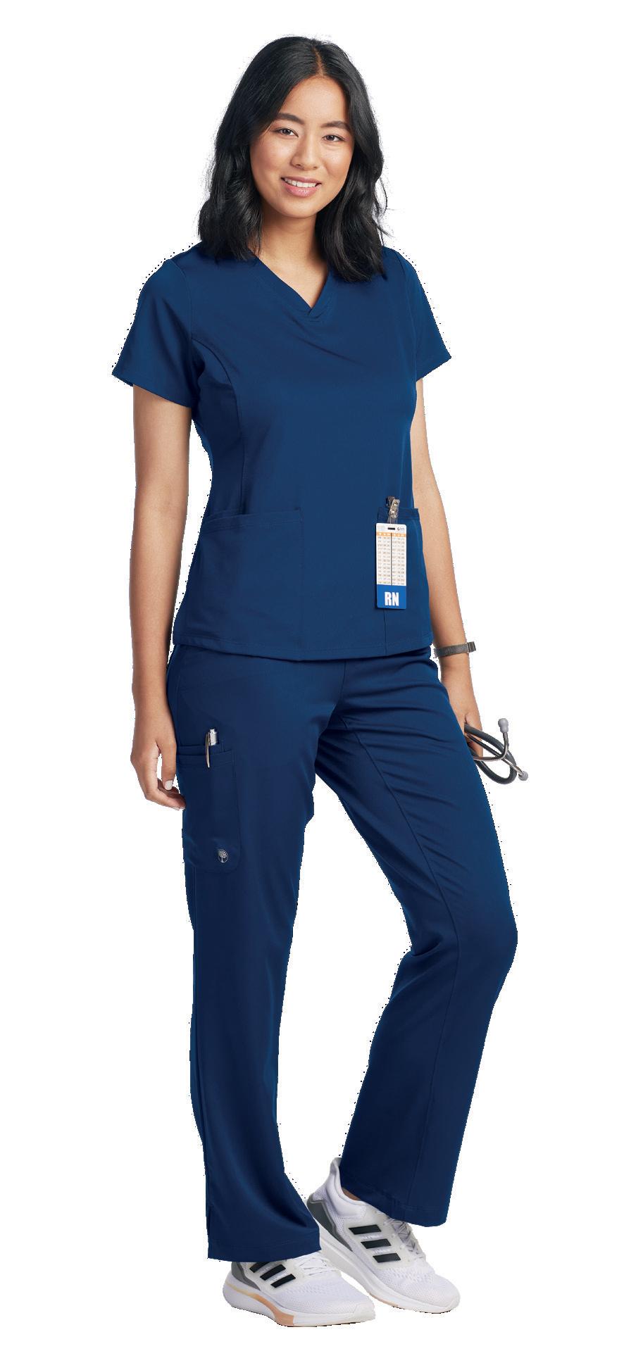 Styles & sizes vary by color. CLASSIC COTTON FEEL COMFORT STRETCH EASY WEAR & CARE Styles & sizes vary by color. In Cotton/Polyester. In Cotton/Polyester. TOP RIGHT: 137 Katelyn Mock Wrap Top V-neck, 2 pockets, drawstring. Starting @ $28.99 713 Morgan Yoga Waist Pant 5 pockets, elastic rib knit waistband, drawstring. Starting @ $34.99 BOTTOM LEFT: 137 Katelyn Mock Wrap Top V-neck, 2 pockets, drawstring. Starting @ $28.99 701 Lindsey Twill Cargo Pant 7 pockets, elastic waistband, drawstring, adjustable toggle hem. Starting @ $36.99 BOTTOM RIGHT: 247 Nicole Top V-neck, 3 pockets, rib knit trim. Starting @ $28.99 LEFT: 1043 Liv V-neck Top 5 pockets, badge loop. Starting @ $34.99 752 Giana Cargo Jogger 8 pockets, elastic waistband, drawstring, rib knit cuffs. Starting @ $41.99 RIGHT: 1059 Georgia Tuck-in Top V-neck, chest pocket. Starting @ $32.99 1061 Flower Burnout Print Tee Crew neck, long sleeve. Starting @ $19.99 753K Sydney Cargo Pant 8 pockets, drawstring, D-ring. Starting @ $39.99 44 | ScrubsAndBeyond.com 45