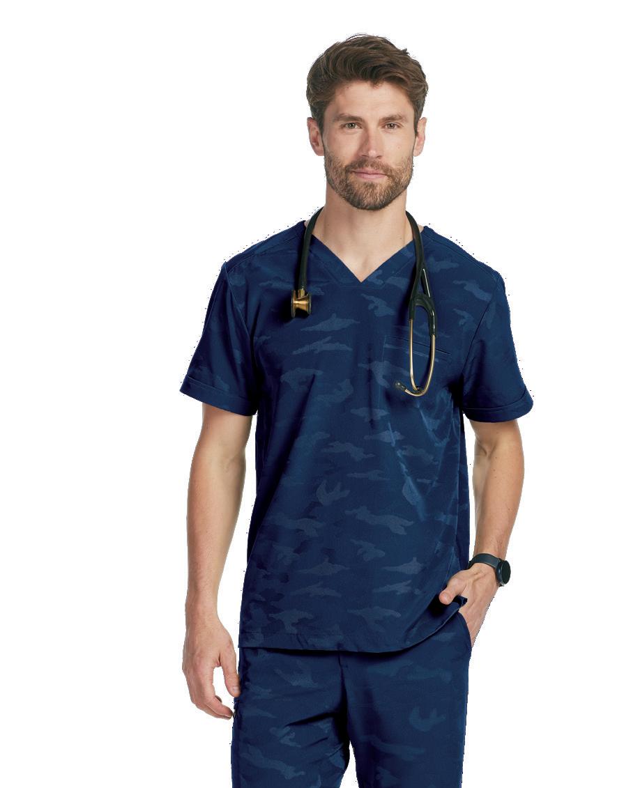 RIGHT: 4315 Zip Front Jacket Round neck, 3 pockets, knit cuffs. Starting @ $25.99 24001 Cargo Pant 6 pockets, knit elastic waistband, drawstring. Starting @ $26.99 BOTTOM LEFT: 4743 Men’s Tuck-in Top V-neck, 2 pockets. Starting @ $20.99 4243 Men’s Drawstring Cargo Pant 7 pockets, elastic waistband, zip fly. Starting @ $26.99 BOTTOM RIGHT: 4727 V-neck Top 3 pockets, badge loop. Starting @ $21.99 4044 Modern Fit Cargo Pant 4 pockets, elastic waistband, drawstring. Starting @ $24.99 Styles & sizes vary by color. STRETCH YOUR COMFORT ZONE SPORTSWEAR-INSPIRED FABRIC DURABLE EXTRA SOFT TWO-WAY STRETCH In Polyester/Cotton/Spandex. 68 | ScrubsAndBeyond.com 69