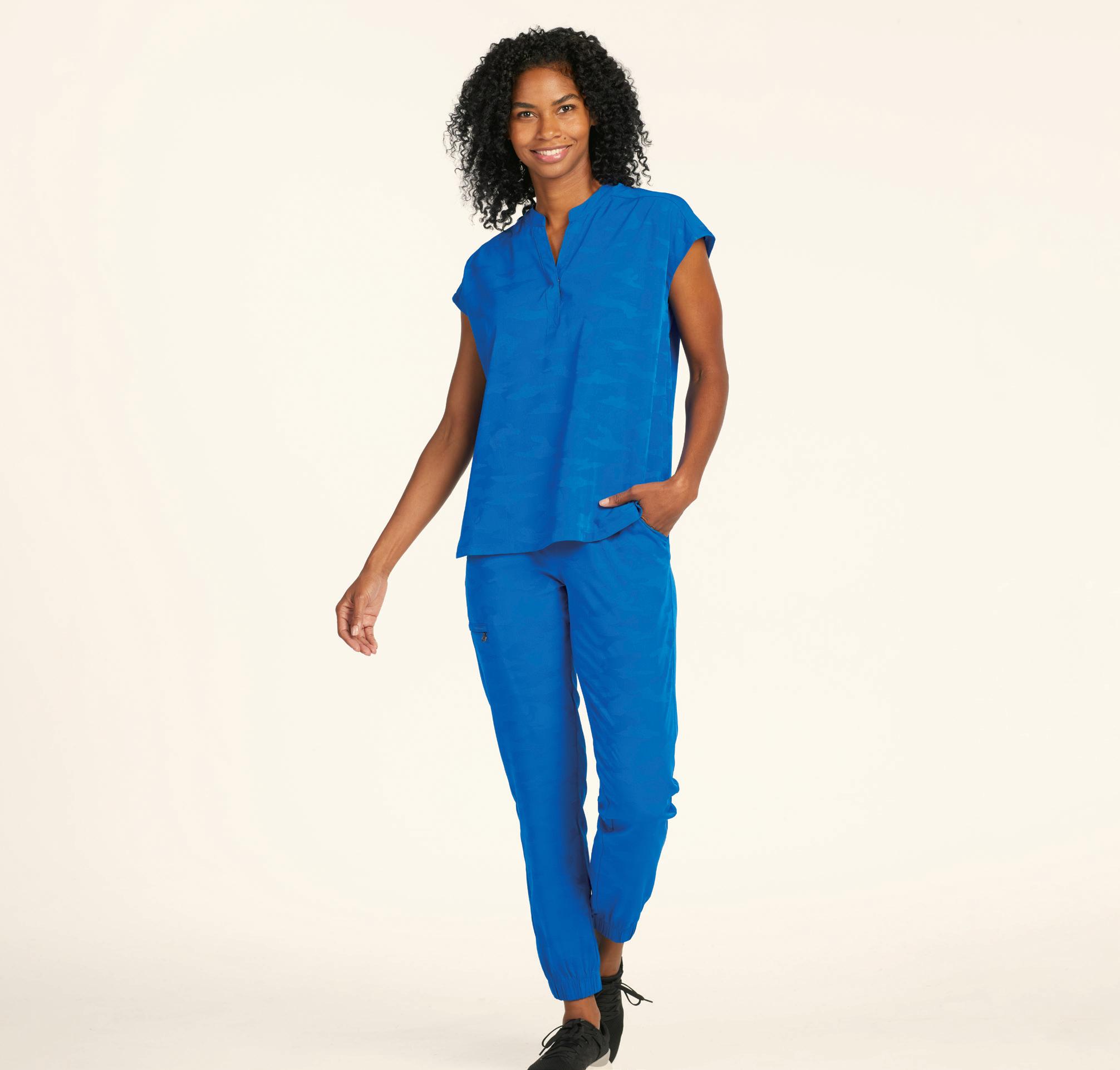 TOP RIGHT: 2432 V-neck Tuck-in Top Chest pocket, split sleeve detail, curved hem. Starting @ $21.99 BOTTOM RIGHT: 2432 V-neck Tuck-in Top Chest pocket, split sleeve detail, curved hem. Starting @ $21.99 2711 Drawstring Cargo Jogger 6 pockets, knit waistband & cuffs. Starting @ $26.99