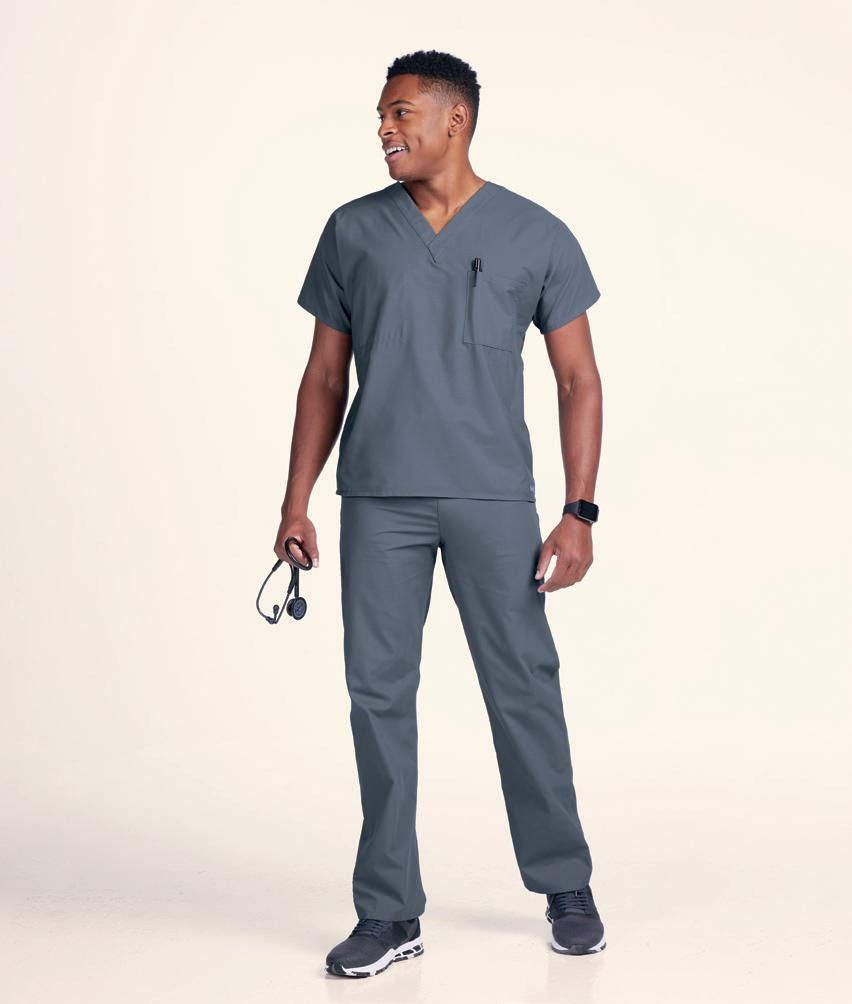 LEFT: 15108 Men’s V-neck Top Double chest pocket, drop tail. Starting @ $28.99 54108 Men’s 8-pocket Cargo Pant Elastic back waistband, zip fly, drawstring. Starting @ $32.99 RIGHT: C12106 V-neck Top 2 pockets, mesh back & underarm vents, badge loop. Starting @ $34.99 C52106 Flant Front Pant 6 pockets, elastic waistband, inner drawstring. Starting @ $35.99