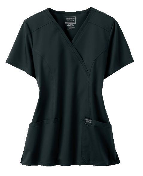 F. 2625A Mock Wrap Top with Certainty® 4 pockets, rib knit back panel. Starting @ $33.99