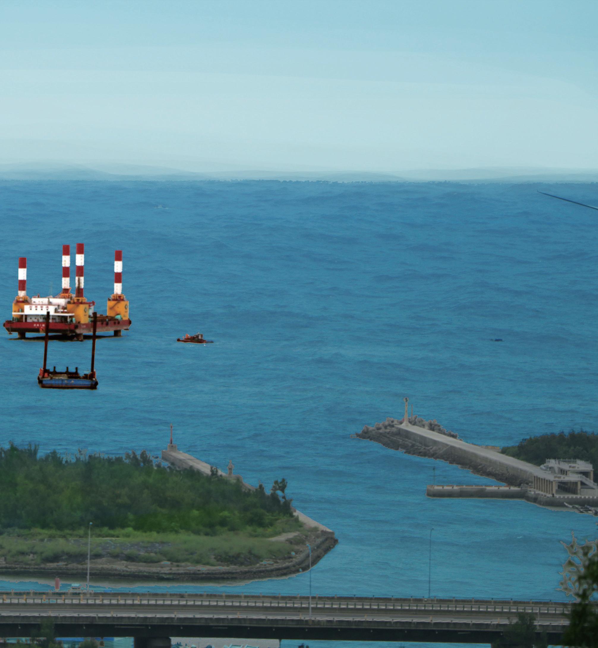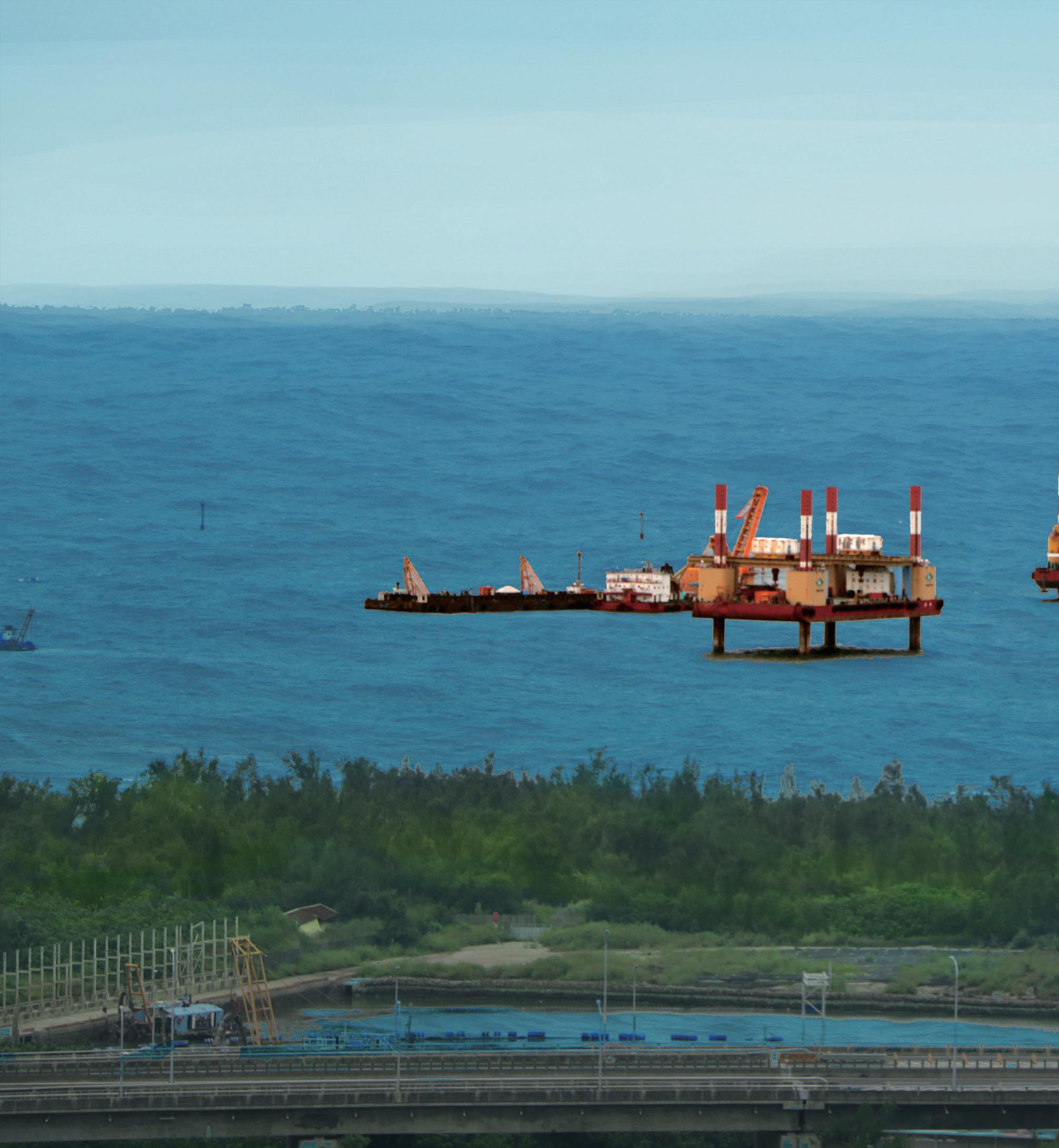 約定的台電之島/電腦後製 身旁的台電發電廠,是自我出生以來就有的記憶,我 想讓海上建設給人一種突兀的非現 實的奇妙感。 26