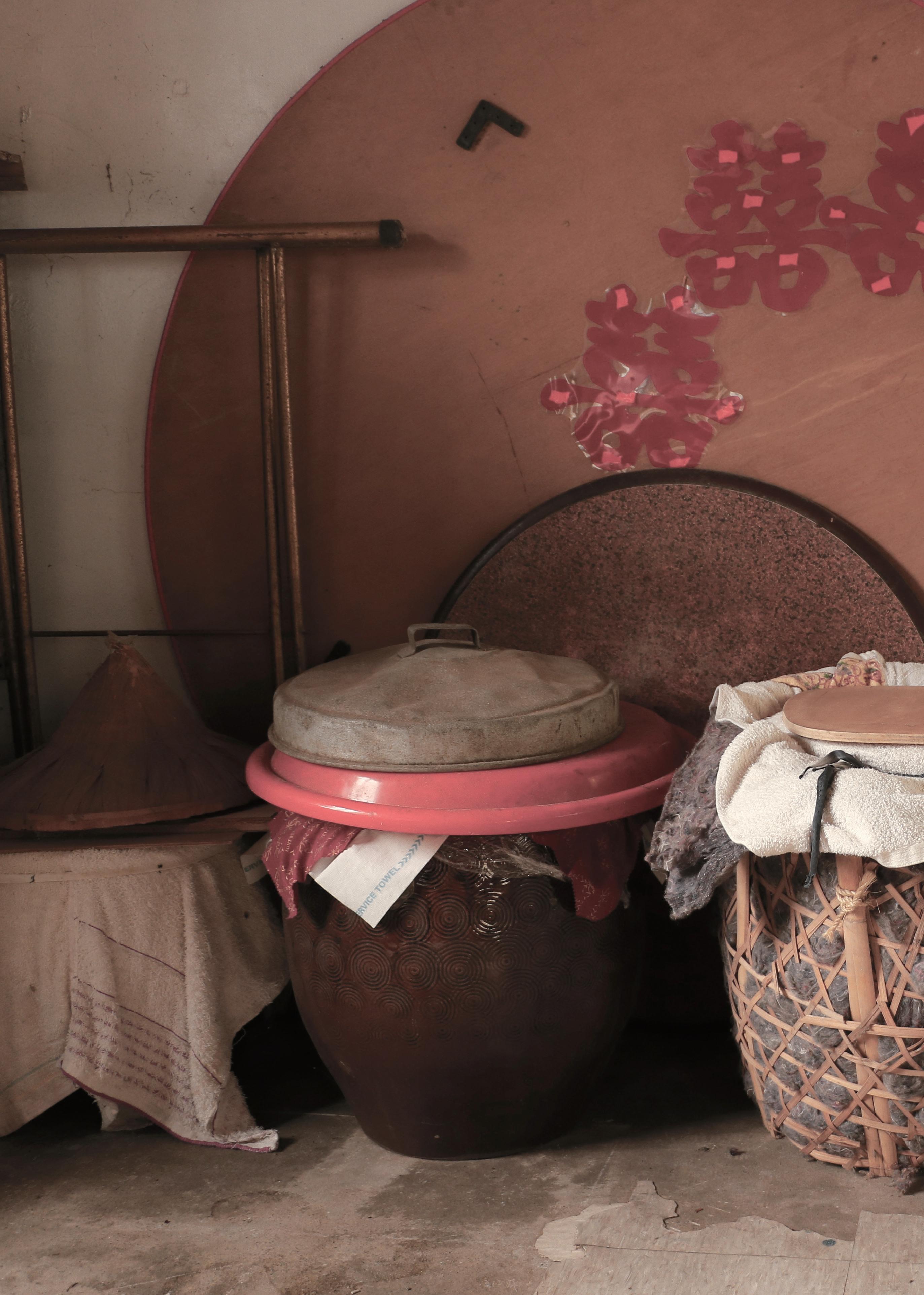 1949 年鍾氏一家人在贛州瑞金一帶紅黨青年迫害,老爺與大哥慘遭槍斃,身為小學老師的老九一 路輾轉逃難,渡海來台,在苗栗縣白沙屯一帶定居,娶妻生子,育有五名子女,老九於 2012 過世, 傳下許多老手藝。 鍾氏酒釀 / 攝影