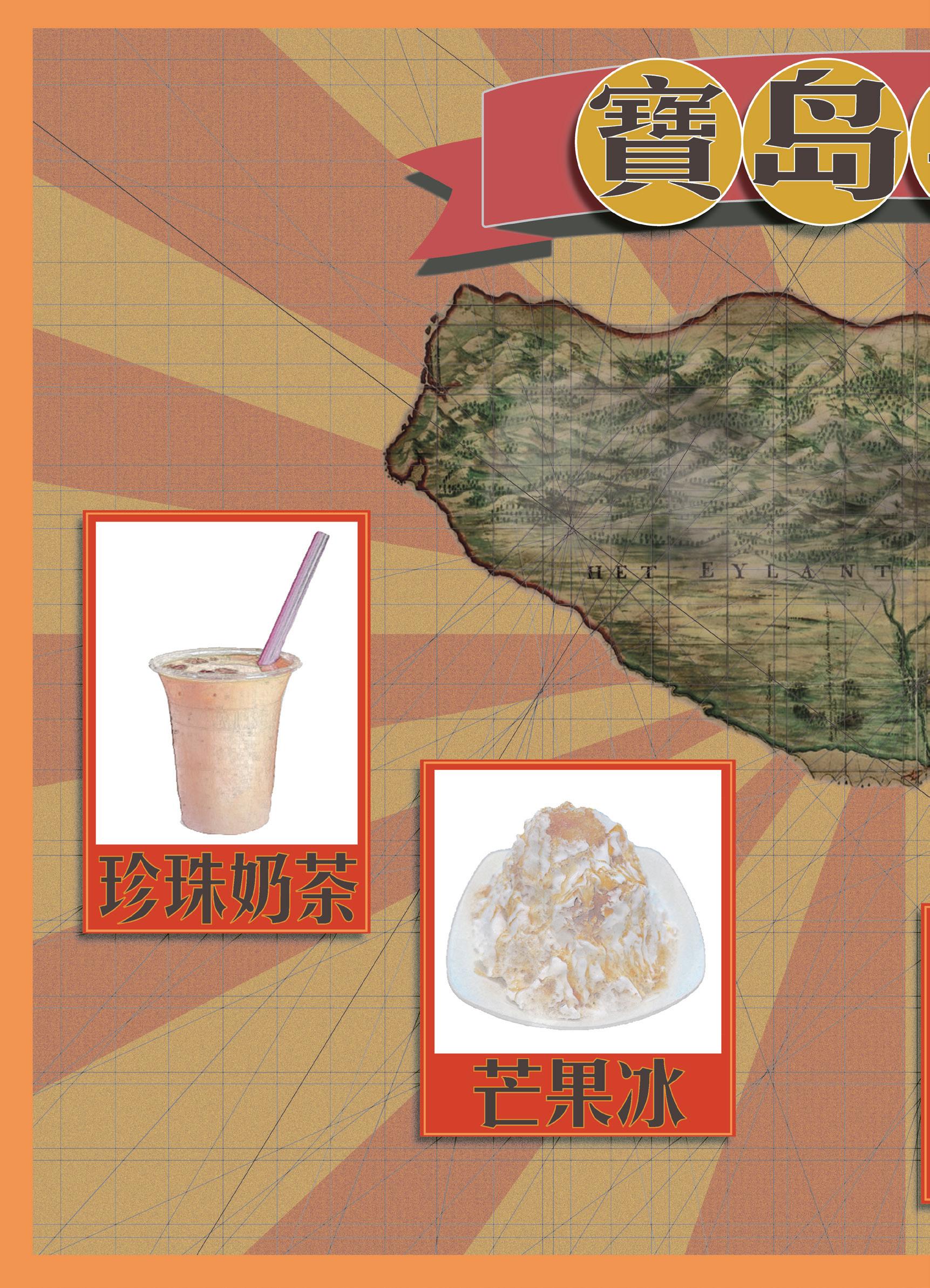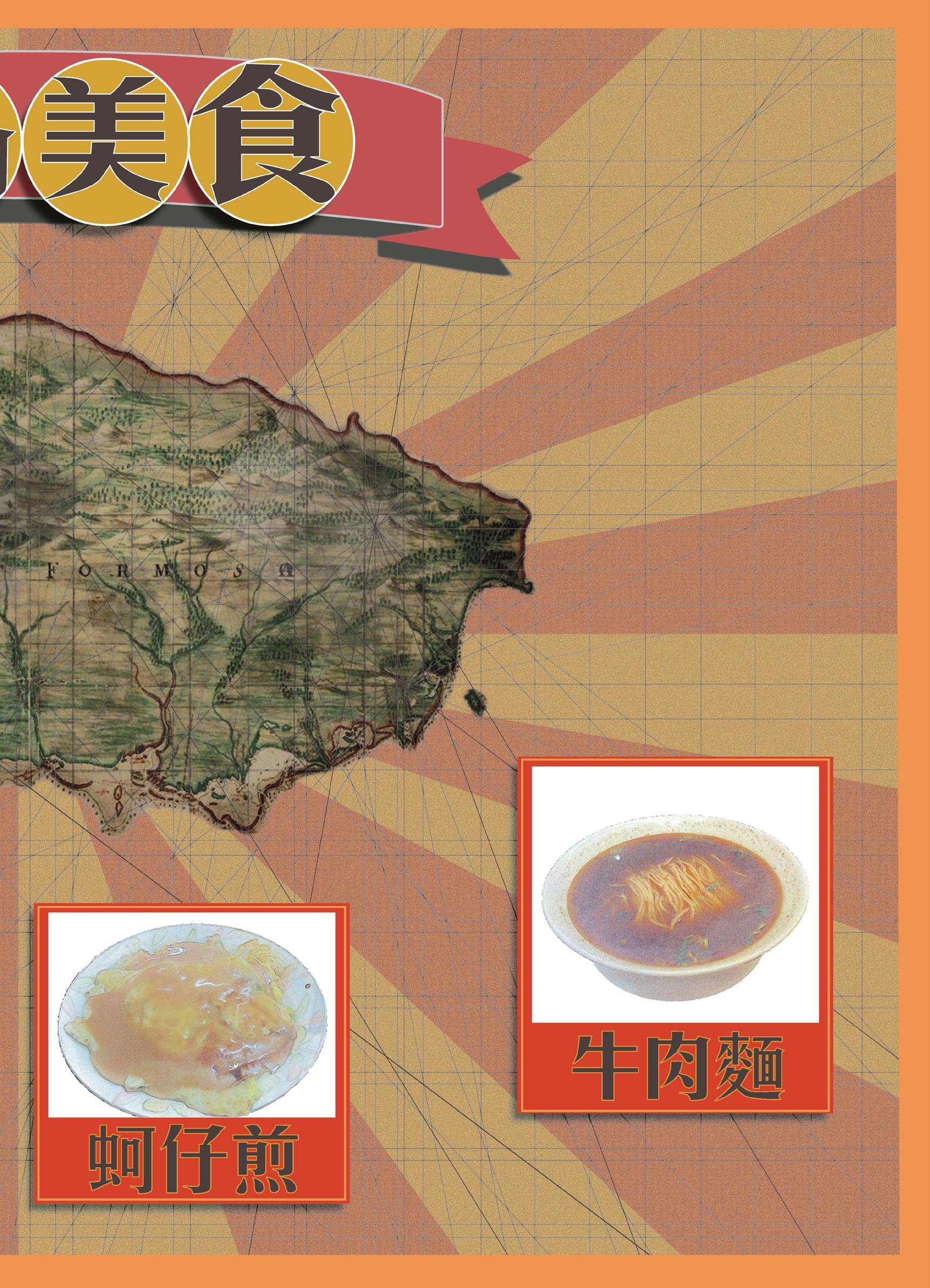 地溝油、塑化劑、過期原料等一連串的在台灣爆發的食安危機,讓我們自詡為美食國家的稱呼,變得尤其諷刺,於是做 了這張沒有蚵仔的蚵仔煎、沒有芒果的芒果冰 來當作台灣美食觀光海報。 Welcom to 寶島/ A1 / 電腦輸出 18