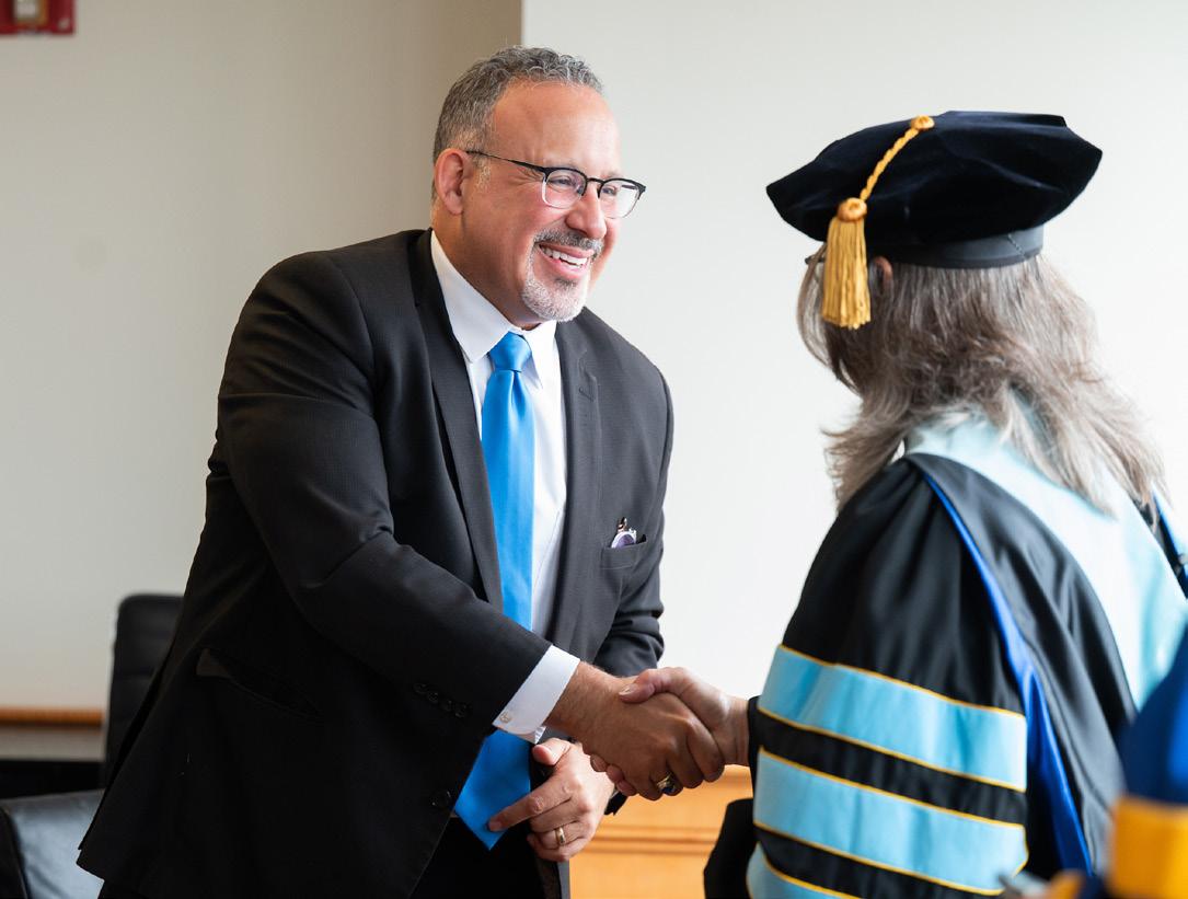 In Spring 2025, Southern welcomed Former U.S. Secretary of Education Dr. Miguel Cardona as the keynote speaker for the SGPS commencement ceremony, where he was also honored with an honorary doctorate. A Connecticut native and champion for educational equity, Dr. Cardona