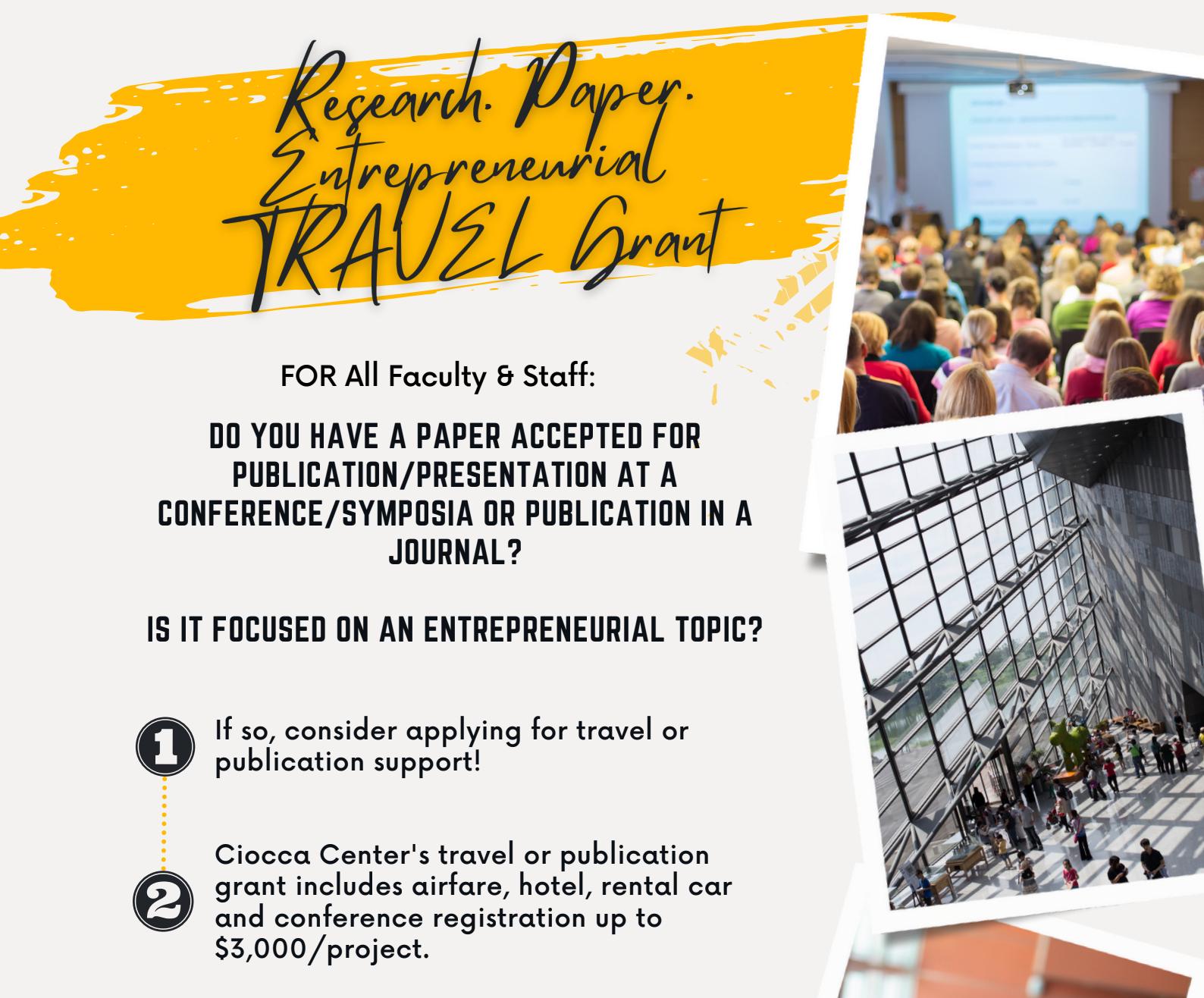 Travel grants provide up to $3K per project when recipients are presenting work in the fields of Innovation and Entrepreneurship
