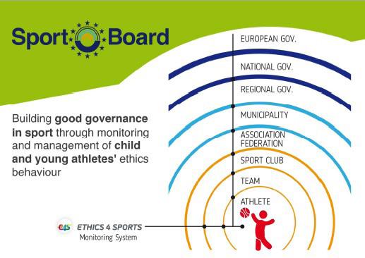 The SportBoard logo expresses its institutional nature, also embodying the strategic goal of reaching multiple levels of stakeholders: athletes, clubs, sports federations, public administrations, national governments and the European Union.