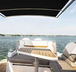 facing sun lounge and roomy swim platform with available entertainment table or sport rail.