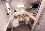 The luxurious cockpit is spacious and comfortable, with space for up to 10 people to enjoy. The U-shaped sofa/ table combination can be converted into two extra berths for sleeping, or it can be used as a solarium during the day. Modern storage innovations encompass expanded waterproof containers under the seats.