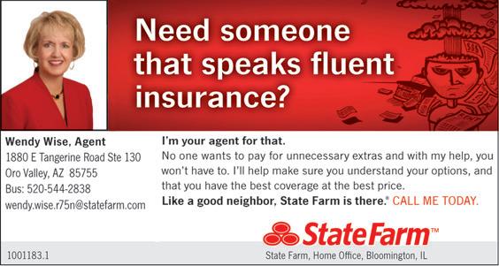 Paid Advertising, Sun City Oro Valley Tipster , March 2023, Page 46 Dawn Caffall (Agent/Owner) 520-825-7003 dcaffall@farmersagent.com 15920 N. Oracle Road — Suite 130 Local Agent Specializing in Sun City Auto • Home Umbrella • Life Golf Carts Annuities • IRAs Insurance Specialized for Your Retirement! Farmers Insurance of Catalina ABLE-BODY PAINTING, INC. JEFF JARVIS Interior a Exterior Painting a Licensed, Bonded, Insured. a Serving Sun City Oro Valley since 1997. a Roof coat on flat roofs. a All work warranted. www.ablebodypainting.com (520)400-1591 ROC 160023 Registered with your Consumer Referral at Sun City Oro Valley Janine Denning, SRS, SRES Broker Associate | Lic# BR624663000 520.907.9757 Janine.Denning@comcast.net www.JanineDenning.CBIntouch.com 11165 N. La Canada Dr. #175 Oro Valley, Arizona 85737 Each Office Independently Owned and Operated REALTOR You deserve the best in real estate and I am here to provide it!