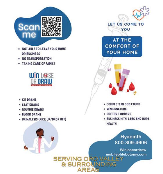 Sun City Oro Valley Community Association provides this publication for informational purposes only and neither endorses nor promotes any of the products or services advertised herein and assumes no responsibility or liability for the statements made in this publication.