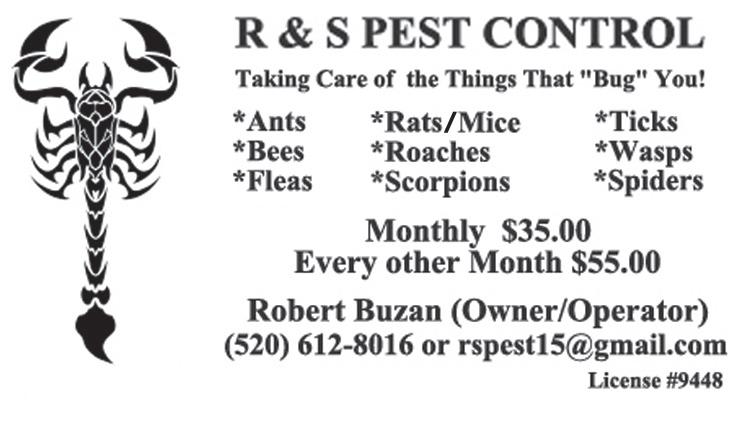 HOUSE WATCH: Jay’s Home Watch with TLC, “I’ll watch your home when you’re not.” I will check on your home regularly, water indoor plants, bring in mail, newspapers and packages, contact your handy person, landscaper, irrigation person, etc., if needed and take care of any emergencies that arise. I will email you with an update each time I visit your home. Jay Leutenberg, all-year resident. Call 520-444-8529, email jayleu35@gmail.com.