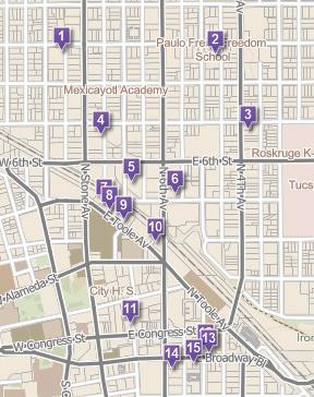 If you decide to venture beyond downtown, there’s another interactive map online at bit.ly/tucsonmurals. This map is color-keyed by region so that you can concentrate on specific geographic areas to plan your mural safaris on different days. Click the View Larger Size icon on the map and it will enlarge for easy planning. This web page is a useful resource to scroll through photos of the many murals and learn the artist’s names and the addresses where they are located. If you can’t take a drive, be sure to take a virtual stroll. If you’d like to learn a bit more about the murals, www.thisistucson. com has photos along with some narrative about the mural content. The mural collection is frequently added to, so revisit the web pages ocThe online interactive map of the downtown Tucson mural locations includes photos and descriptions of the artwork. www.tucsonaz.gov/muralmap/# casionally to keep up-to-date. Enjoy and appreciate the native and Hispanic cultures reflected in many of them, as they reflect the Tucson environment and people. Let us know if you have a favorite. The University of Arizona Fred Fox School of Music will feature small ensemble performances in front of some of the downtown murals on Monday, October 17. More information will be available at www.music.arizona.edu.