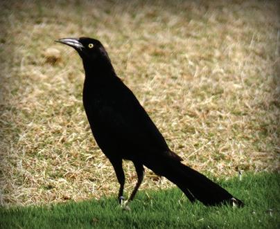Great-tailed grackles are often seen around The Views Golf Course ponds and in every shopping mall in the area, grabbing whatever discarded food they can find. Their interesting calls and squeals are often quite hu- Steve Holmes photo morous. There are three species of grackles in the U.S.A., but the greattailed is the only one found in Arizona and is only common in the southern states west of the Mississippi.