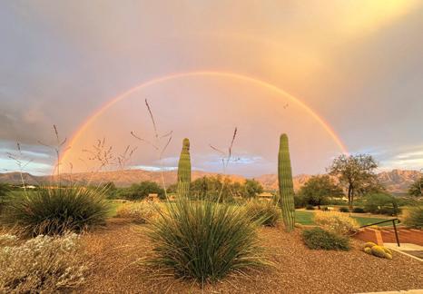 throughout Oro Valley and the surrounding areas there have been many fallen trees, but the desert blooms, green mountains and thriving cacti have been breathtaking with the backdrop of rainbows and sunsets, plus the smell of the desert in the rain is unmatched. With all the dangers, the magnificent spectacle of the desert monsoon is something marveled at by all.