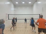 Wallyball is volleyball played on a racquetball court. With three to five players on each side, it is fast, fun and a great workout that tones muscles and improves coordination. Players use the walls to create angles on shots but cannot use the ceiling or back wall of the opposing team. We welcome new members, both men and women. Come see if the game is for you.