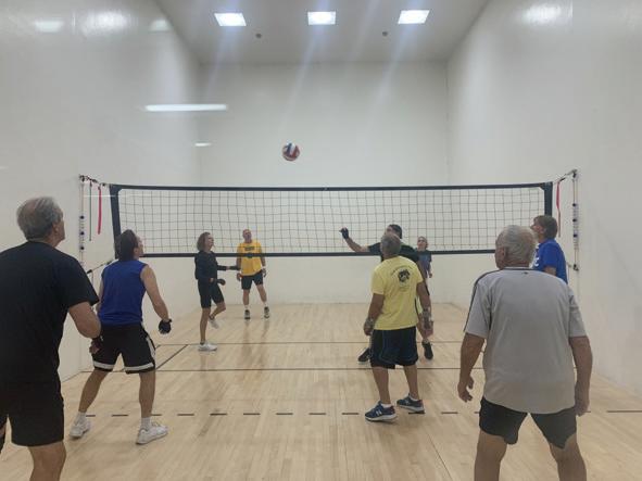 Walleyball is volleyball played on a racquetball court, with three to five players on each side. It is fast, fun and a great workout that tones muscles and improves coordination. Players use the walls to create angles on shots but cannot use the ceiling or back wall of the opposing team. We welcome new members, both men and women. Come see if the game is for you.