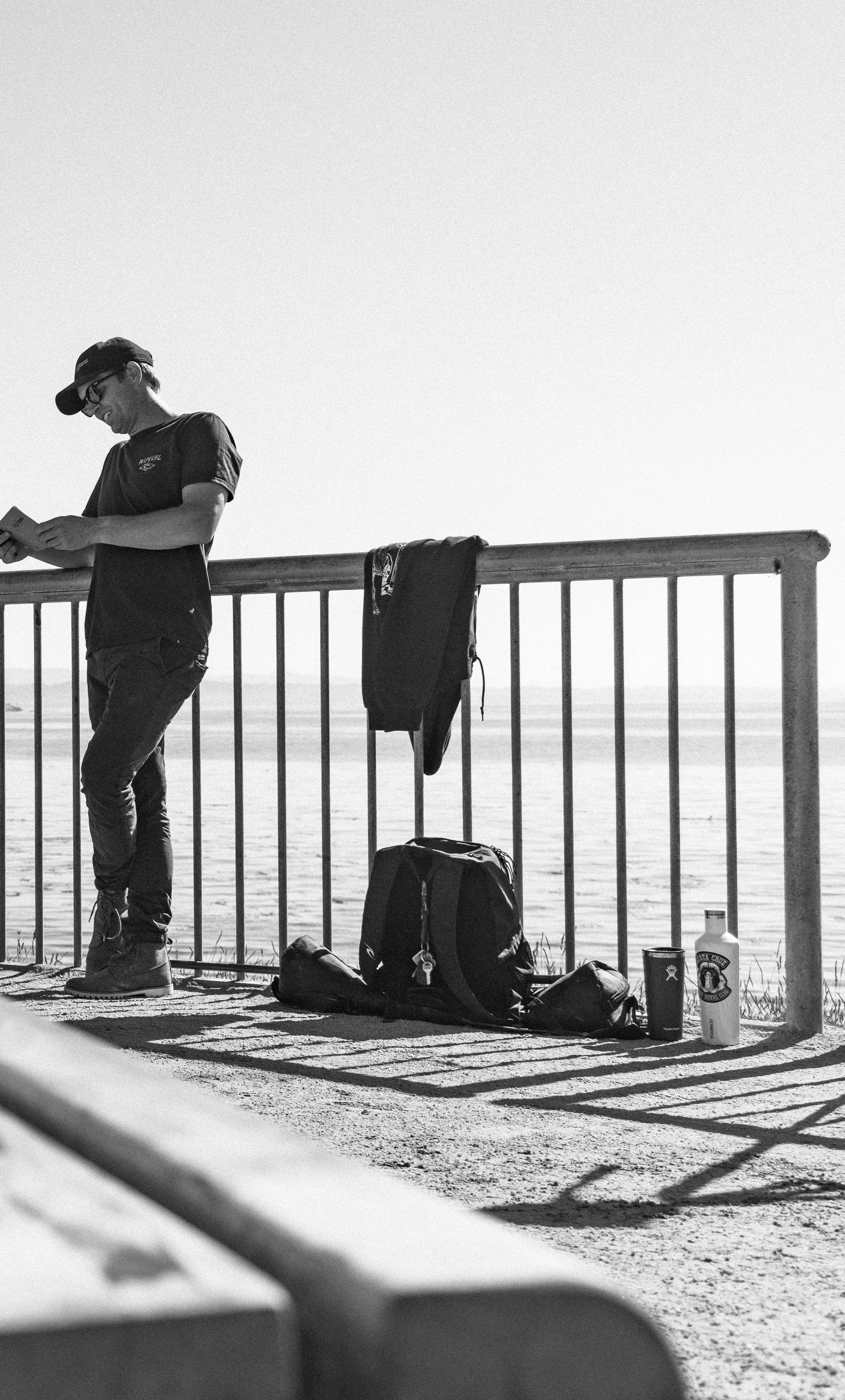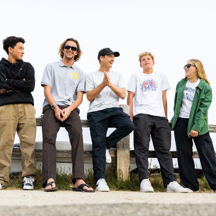 In June of 2021, Myers rolled the dice. He left his longtime job as Rip Curl’s Team Manager, moved home to Santa Cruz after 10 years living in Southern California, and started Myers Surf Mentorship, a coaching program focused on elite competitive surfers. (Sorry, weekend warriors, you’re out of luck.) His success was immediate. Since its inception, he has coached nearly all of his athletes to their career-best wins, including Rio Waida, who, with Myers’ support, became the frst-ever Indonesian surfer to qualify for the World Championship Tour (WCT) in 2022.