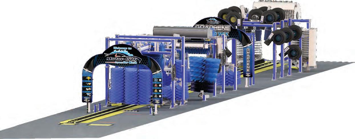 Wash Street 130’ Rear Wheel Push w/ Dry N’ Shine Motor City Wash Works® exclusive Color Skinz™ are made of easy to clean UV resistant UHMWPE. They offer a great branding opportunity, while hiding utilities, and creating an aesthetically pleasing wash bay. Color Skinz™ also keep critical controls out of the harsh wash bay environment and are easily replaced when updating your branding.
